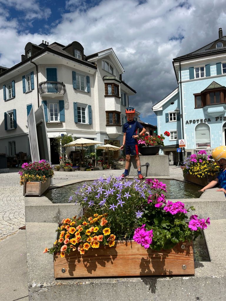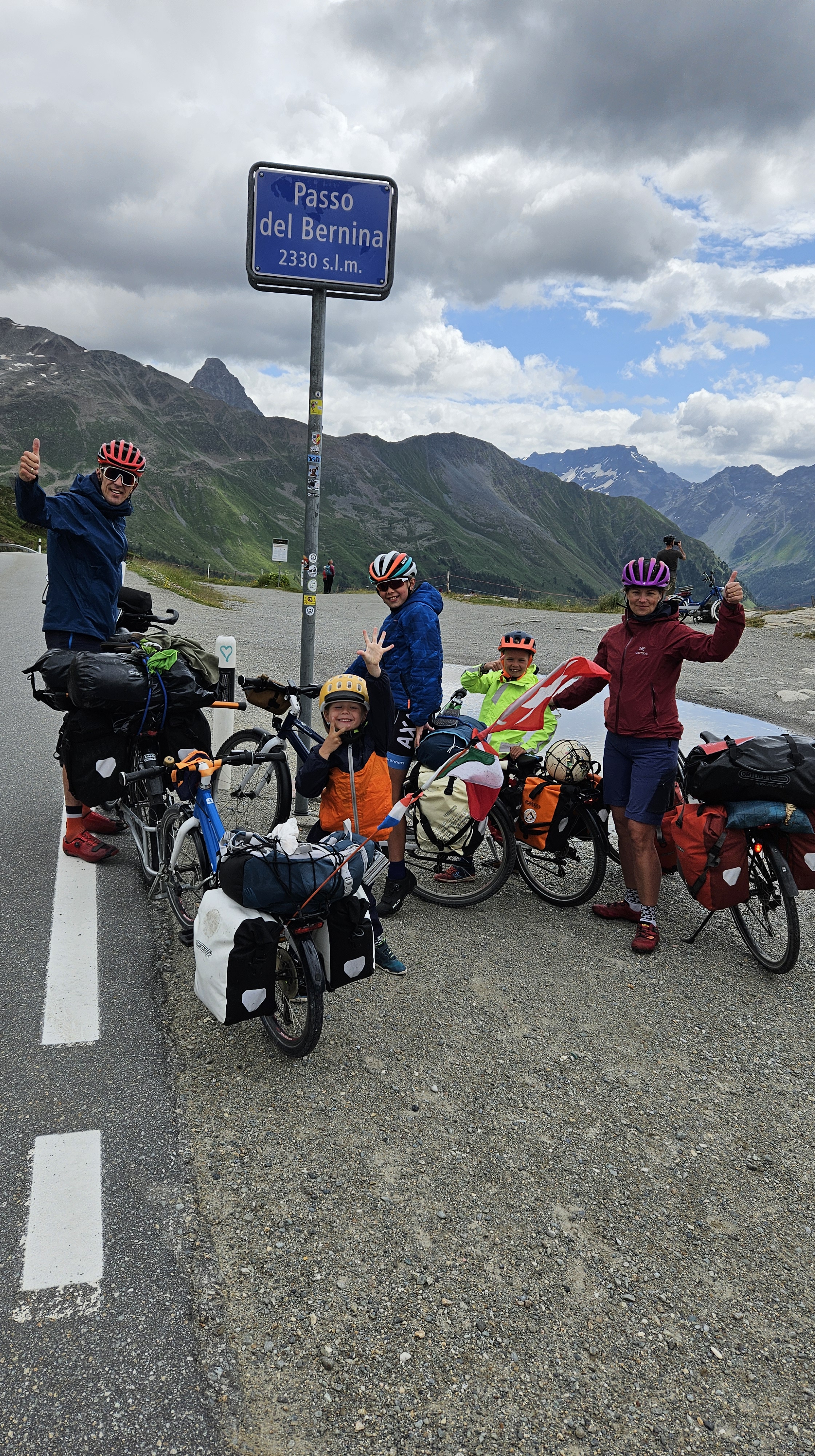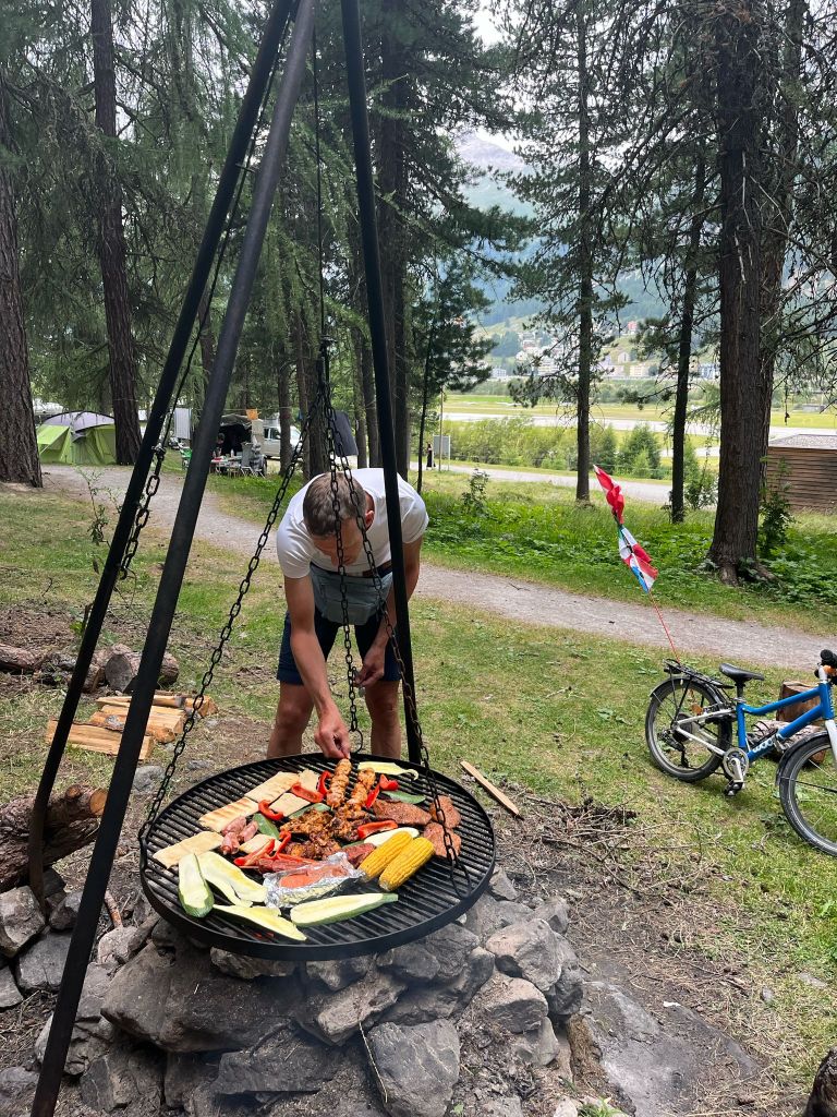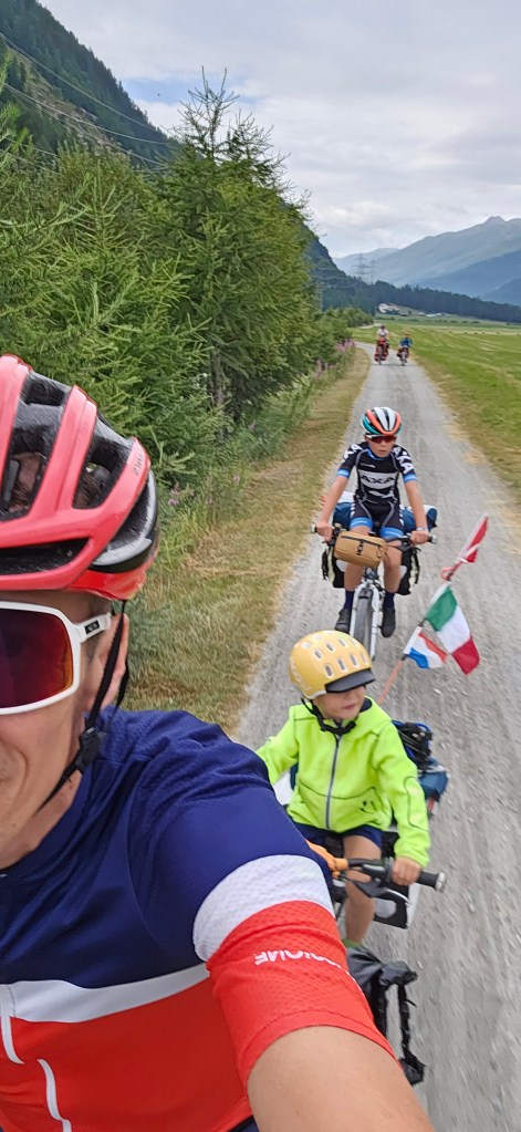 We vonden het hooggebergte zo prachtig dat we langer wilden blijven. We fietsten iets de Bernina Pass op naar camping Morteratsch, een outdoor camping met speeltuintjes, watertjes en een winkeltje. Die avond kregen we een gigantische regen- en onweersbui, dus gingen we vroeg naar bed. De volgende dag stond een pittige tocht op het programma.