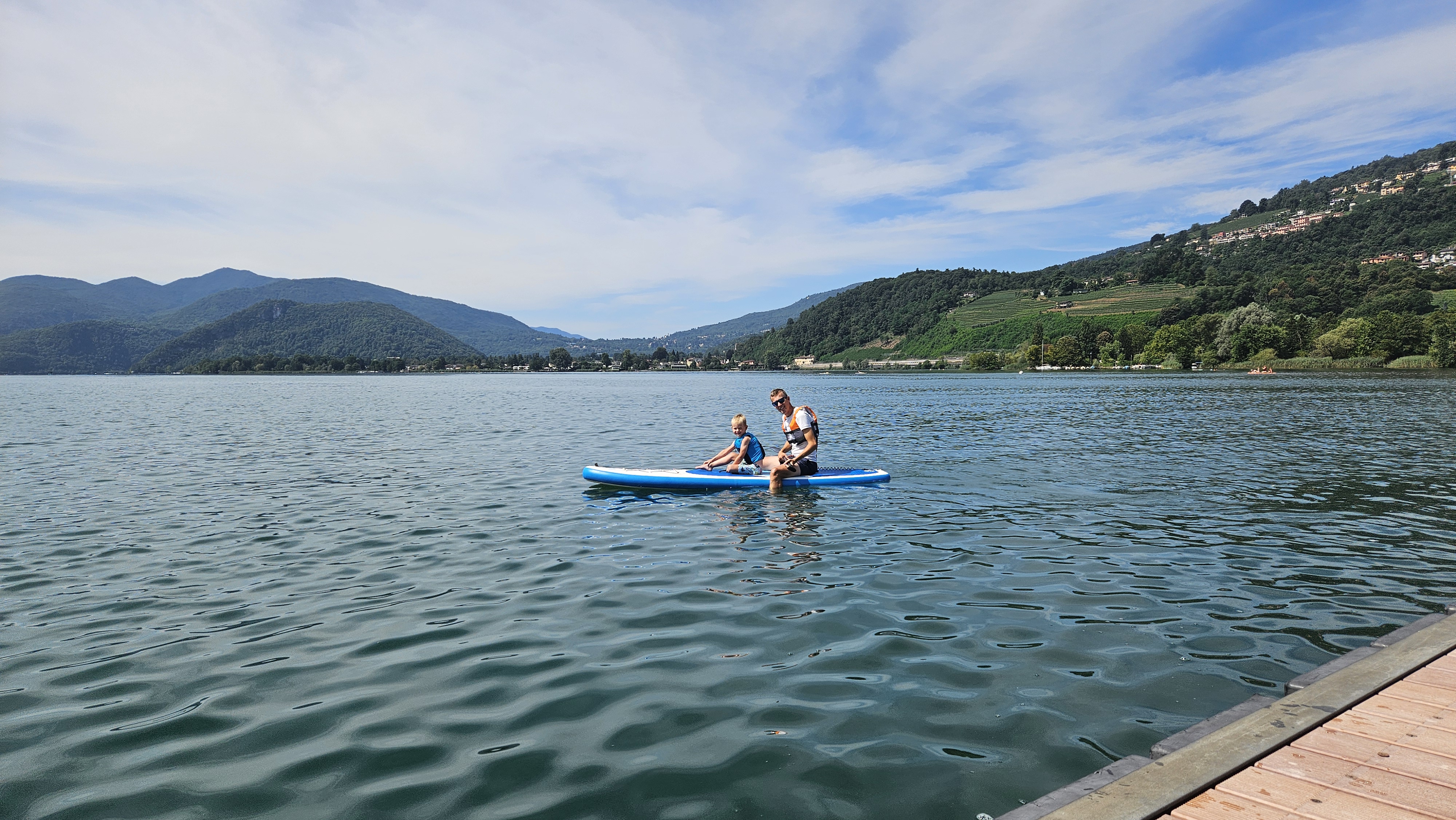 Op camping TCS Lugano verblijven we een paar dagen om vooral te zwemmen en te suppen (te huur). De camping is redelijk hutje mutje, maar de kids vermaken zich prima.