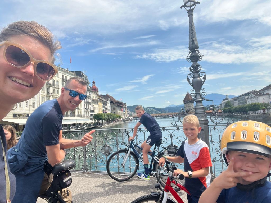 Combi fietsen en treinen bevalt ons erg goed. Voor kinderen kun je een Swiss pas kopen voor 30 Frank waar ze onbeperkt kunnen reizen.